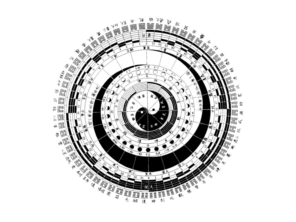 Los movimientos circulares y los cambios de dirección que realiza Master Liu Deming en el vídeo representan los 8 principales hexagramas del I Ching o El Libro de los Cambios que se muestran aquí, y que aparecen también en el exterior del círculo del Yin-Yang (arriba).
