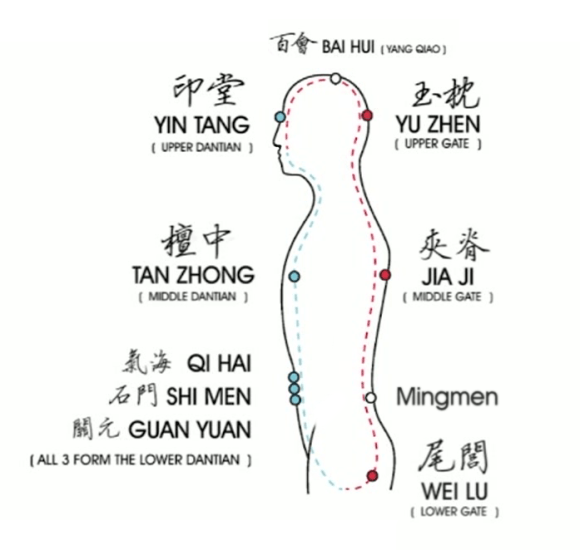 En la práctica de las artes marciales, incluidos el taichi y el qigong, el punto medio equivale al centro, es decir, al proceso de conectar e integrar armónicamente las energías opuestas complementarias del Cielo y de la Tierra en el movimiento del Yin hacia el Yang y viceversa.