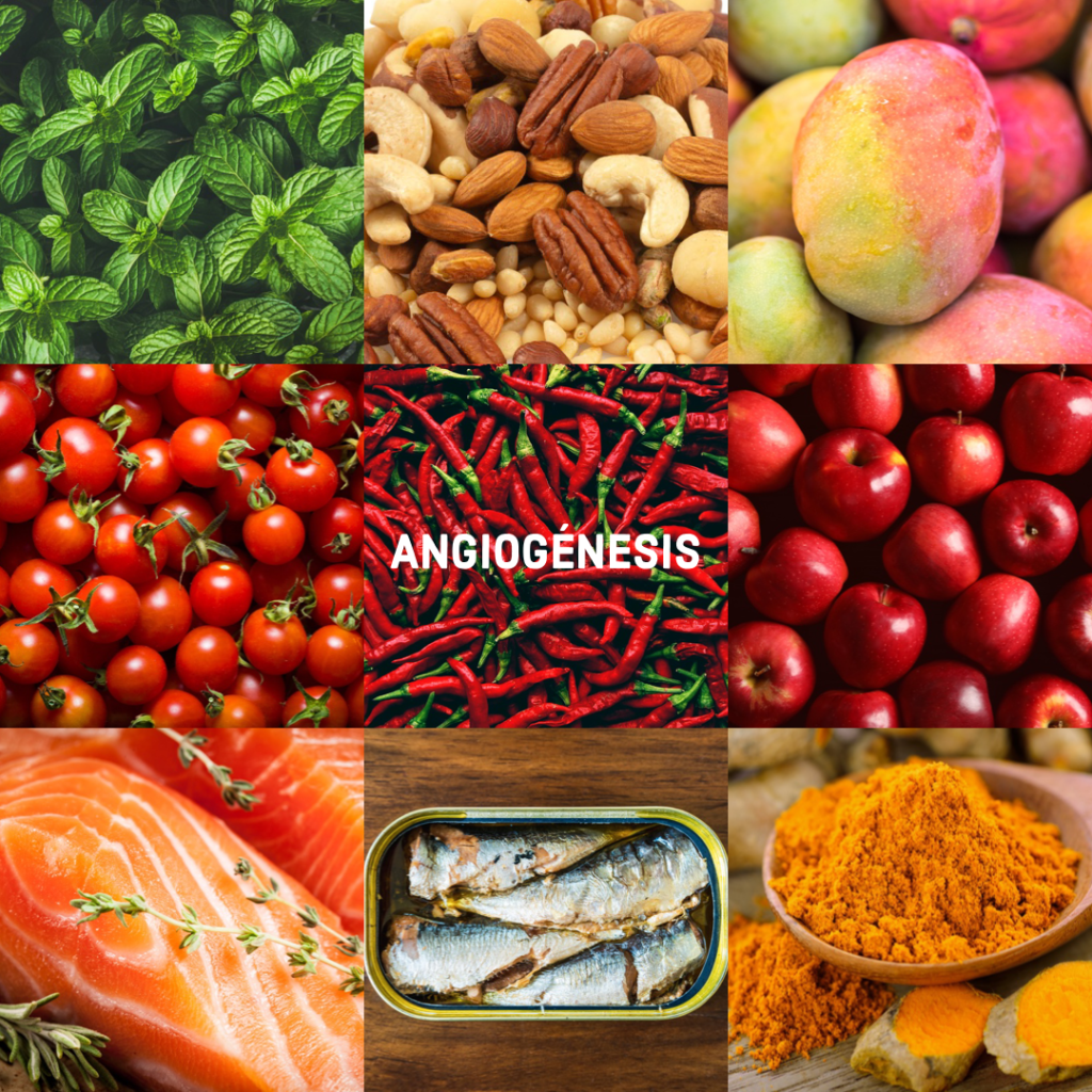 Alimentos como los aguacates, el aceite de oliva, las manzanas, el chile picante, la cúrcuma, la canela, los tomates cherry, el mango, las nueces, el salmón, las sardinas y la menta contribuyen al equilibrio en la formación de los vasos sanguíneos y la circulación de la sangre.